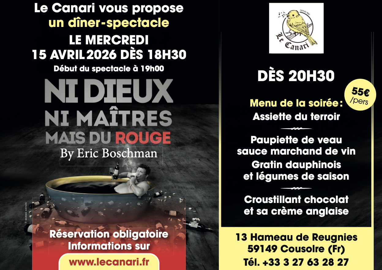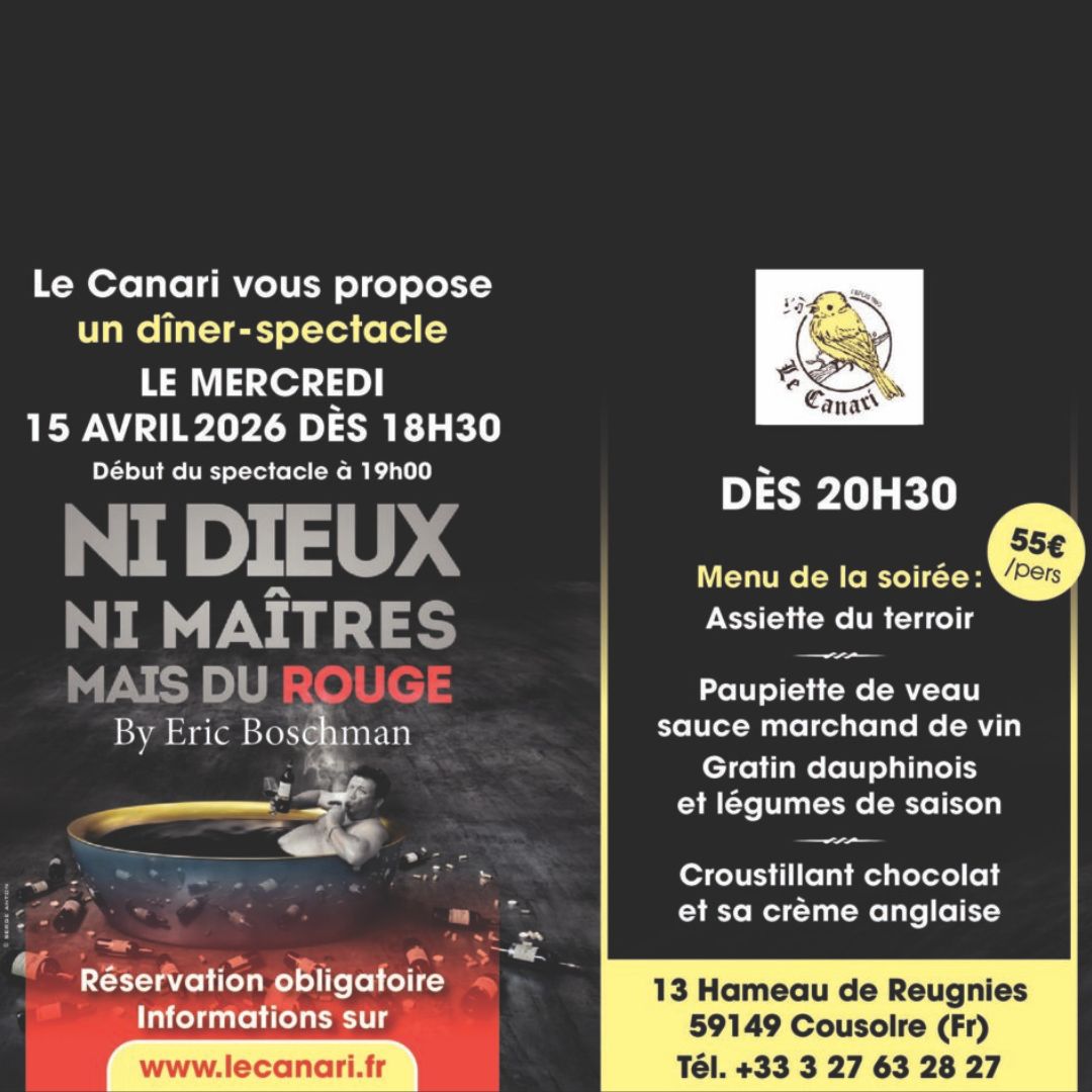 Apprécié pour son bon rapport qualité-prix et l'accueil chaleureux de Richard et de son équipe, le Canari est un lieu incontournable, prisé des randonneurs, cavaliers, motards et cyclistes. Situé à Reugnies, entre Cousolre et Beaumont, c'est l'endroit idéal pour un repas ou un verre (ne manquez pas notre Picon Maison !) et les amateurs d'une cuisine authentique.